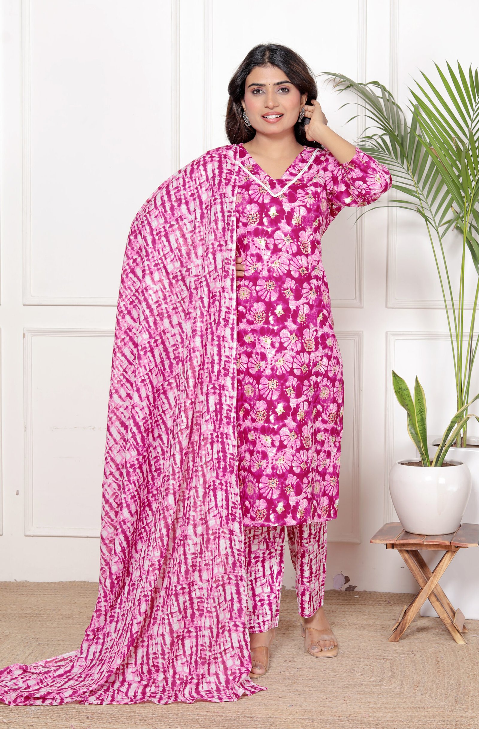 This women’s pink printed kurta set with dupatta is designed for comfort and elegance. The beautiful floral print and soft fabric make it perfect for daily wear, office wear, and festive occasions.
