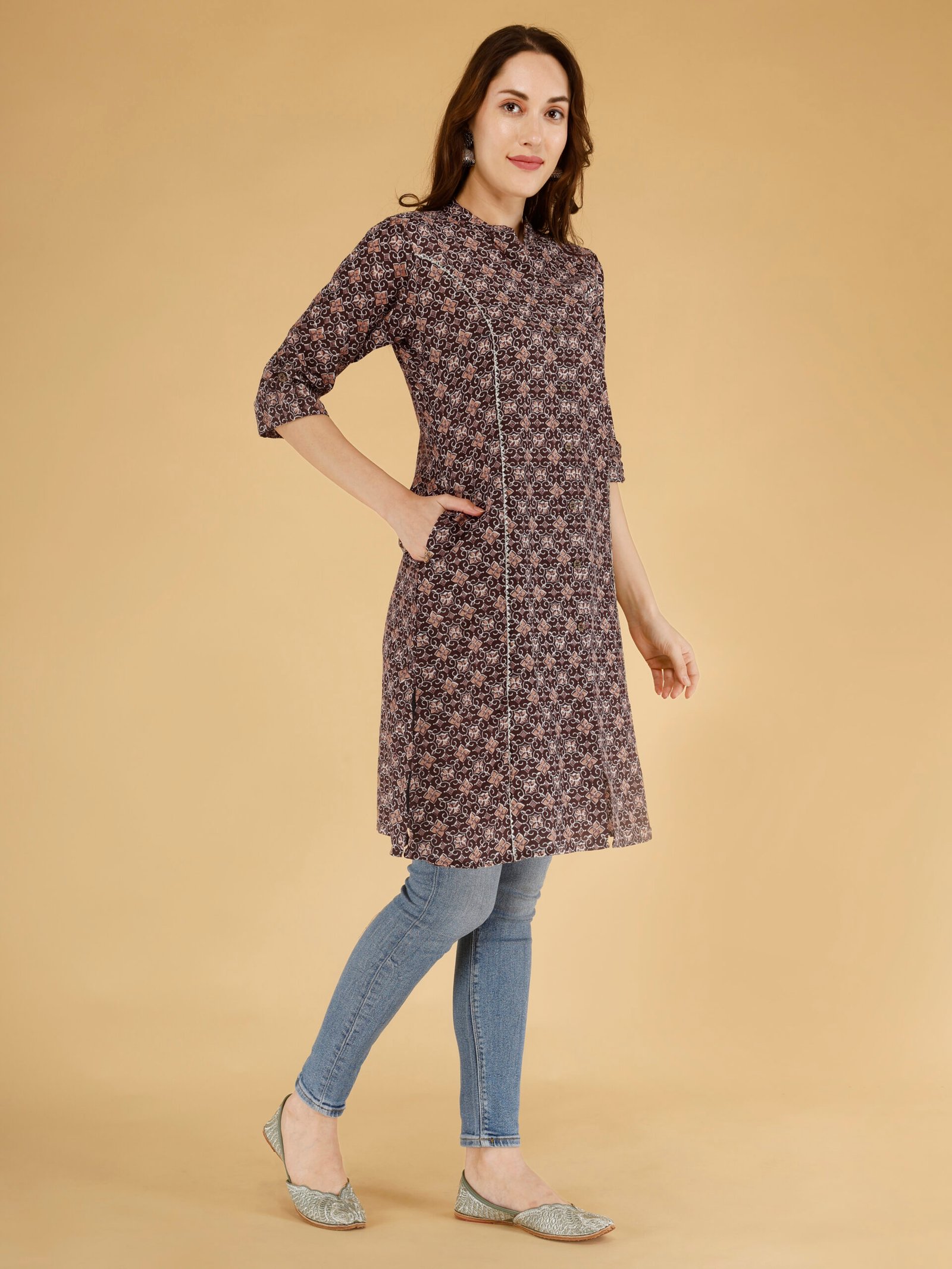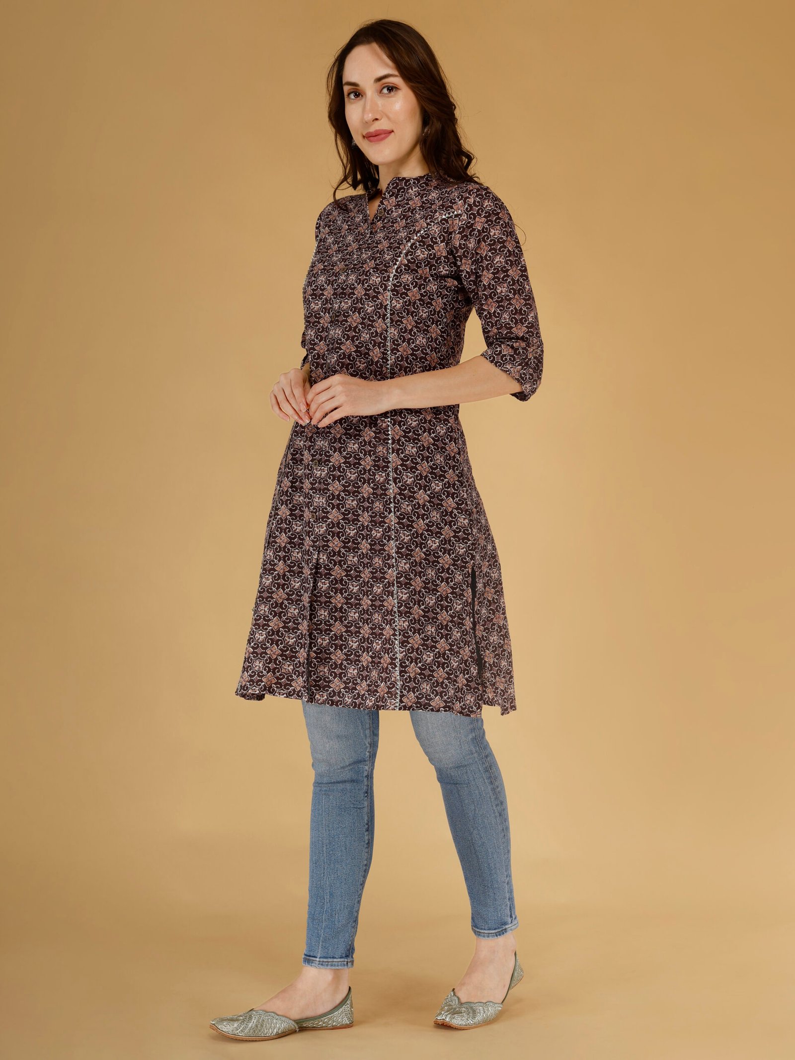 Whether you’re dressing for office, casual outings, or festive gatherings, this brown ethnic kurti for women is a versatile addition to your collection.